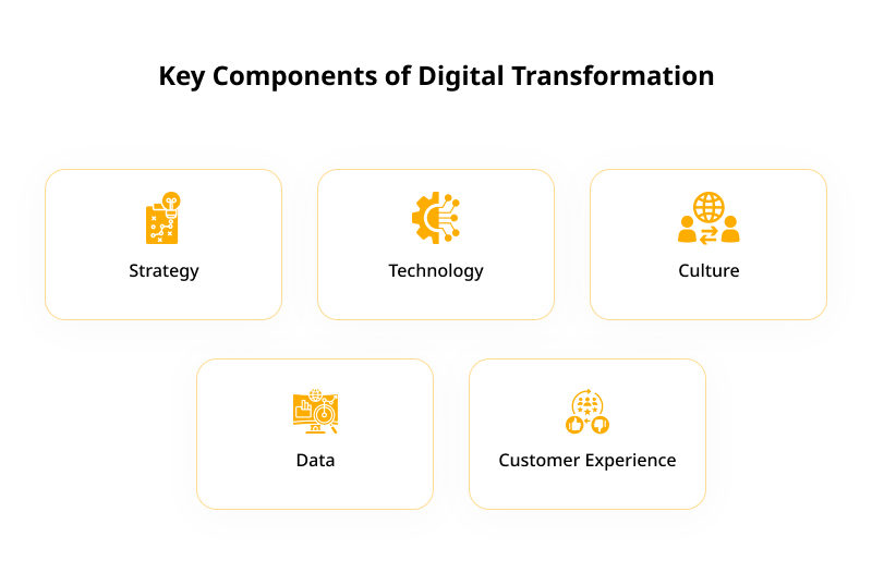 In an ever-evolving technological landscape, businesses are required to stay ahead of the curve to remain competitive. es as the linchpin of this evolution, merging technology and business to boost efficiency and innovation. This blog will delve into the key components of digital transformation, its advantages, assessing your business’s readiness for it, the strategies to employ, and overcoming related challenges.